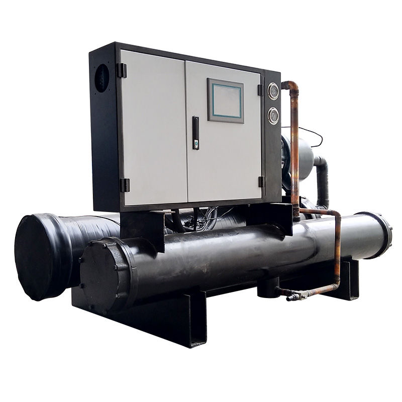 Screw chillers can be divided into two types: water-cooled screw chillers and air-cooled screw chillers. Because of their key components-the compressor adopts screw type, it is named screw chiller. The unit is in the state of gas coming out of the evaporator. Refrigerant: After adiabatic compression by the compressor, it becomes a high temperature and high pressure state.