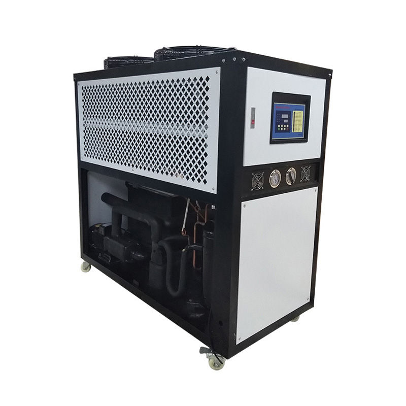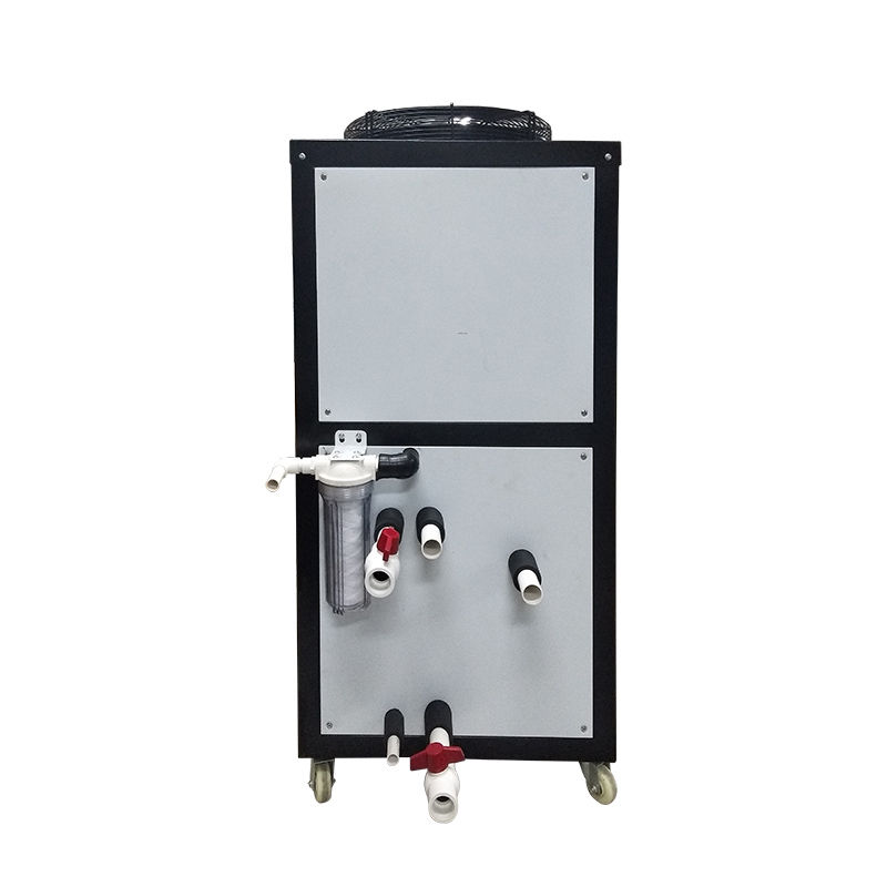 8hp Air-cooled plate exchange chiller is a CE certified chiller. It can be installed without installing a cooling tower, easy to install, move and quickly cool a 8HP horsepower refrigerator.