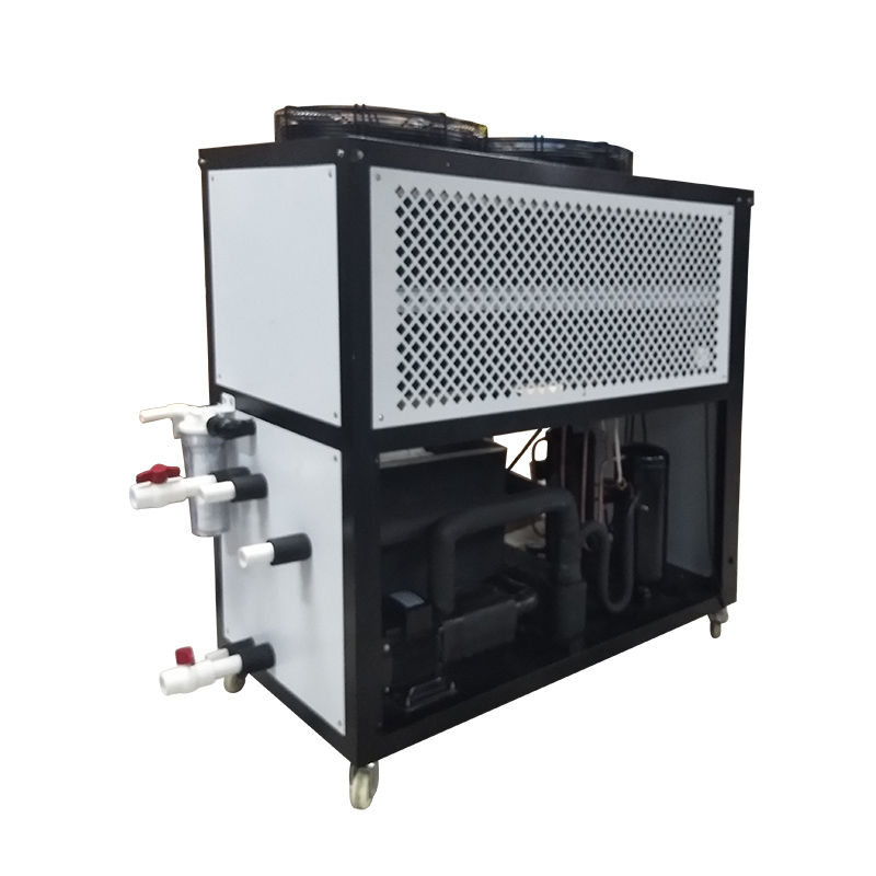This standard 8hp Air-cooled plate exchange chiller is favored by many customers, and the price is reasonable. Usually used for electroplating, oxidation, pool cooling and other open water tanks.